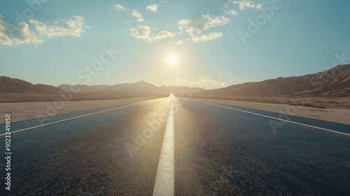Naklejka premium Endless Desert Road Leading to the Rising Sun