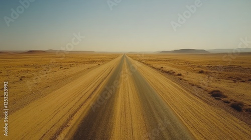 Naklejka premium Endless desert road stretching toward horizon under clear blue sky
