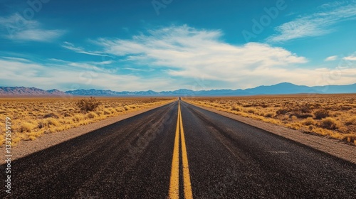 Naklejka premium Endless journey on a desert road under a vast sky in a panoramic landscape