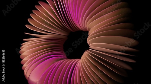 © flashmovie, Fototapeta premium Endless looping animation of an abstract pink and brown twisting torus shape undulating and rotating smoothly against a solid black background, creating a mesmerizing and hypnotic effect
