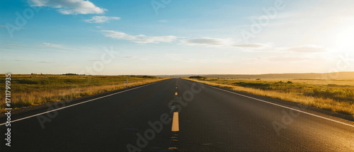 © Adobe Contributor, Naklejka premium Endless open road under clear blue sky during sunny day