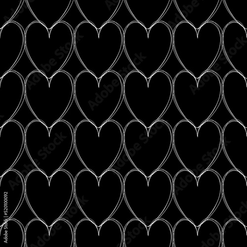 Fototapeta premium Endless pattern of hand drawn white thin intersecting hearts on a black...