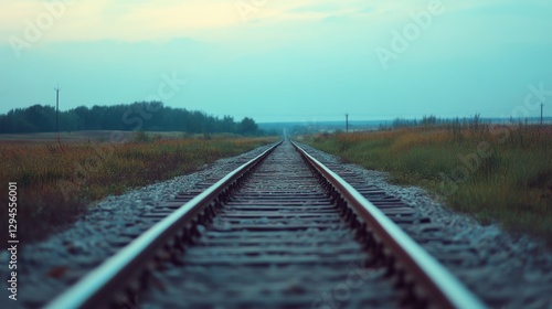 Fototapeta premium Endless railway tracks stretching towards the horizon under a serene,...