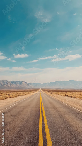Fototapeta premium Endless Road: A lone highway stretches towards the horizon, promising adventure in the heart of the desert.