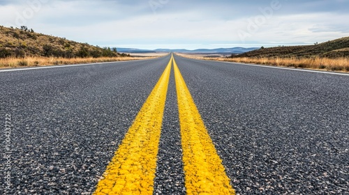 © Naphol, Naklejka premium Endless road stretches into the horizon under a cloudy sky.