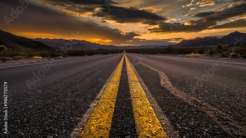 Naklejka premium Endless Road Through Desert Landscape at Sunset