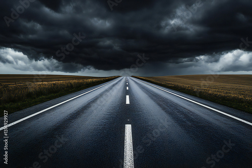 © Hafsa, Naklejka premium Endless Road to the Horizon Under a Stormy Sky