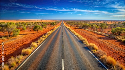 Naklejka premium Endless roads stretching through the vast Australian outback , Australia,...