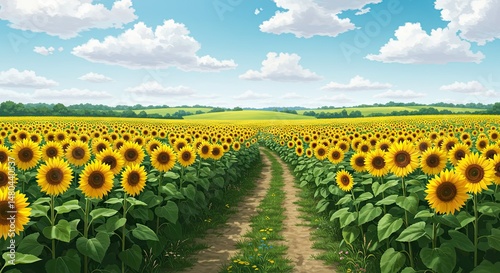 Obraz premium Endless Sunflower Field Under Clear Blue Summer Sky – Scenic Nature Landscape