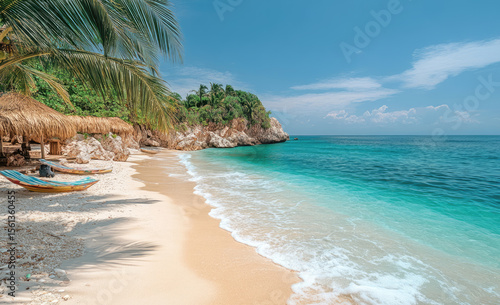 © Roman, Fototapeta premium Endless White Sand Beach Beneath Golden Sunlight