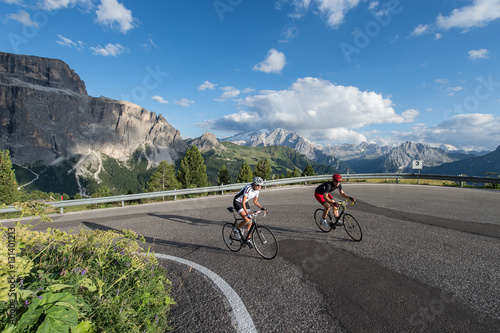 © dolomites-image, Naklejka premium endurance cycling to mountain pass