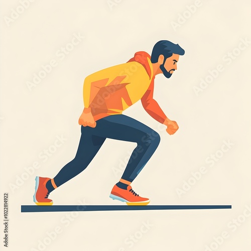 © milkyway, Obraz premium Energetic Athlete Ready to Sprint From Starting Line in Flat style