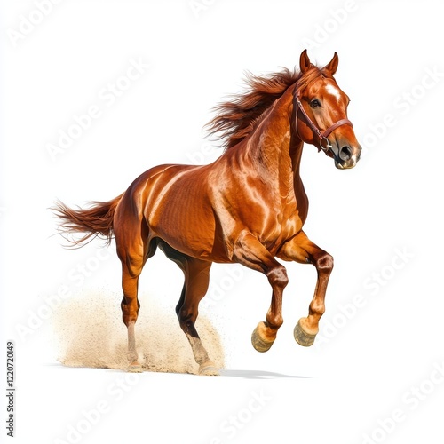 © Nisit, Naklejka premium Energetic Brown Horse Galloping Isolated on White Background