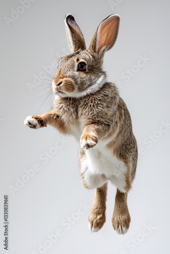 © ashiyanaja, Obraz premium Energetic Brown Rabbit Leaping Dynamically in Studio Setting