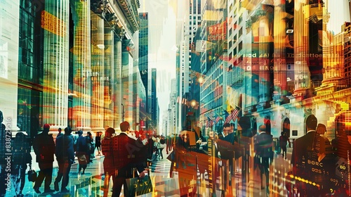 Obraz premium Energetic collage of an IPO event with images of investor enthusiasm, stock...