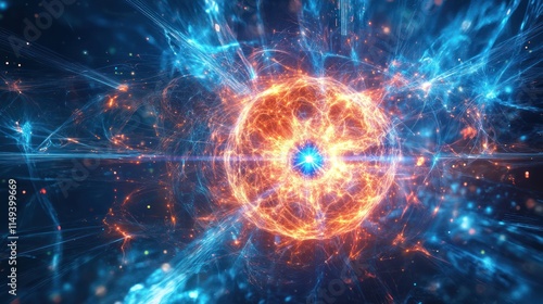 Obraz premium Energetic core radiates bright orange with blue fractal patterns.