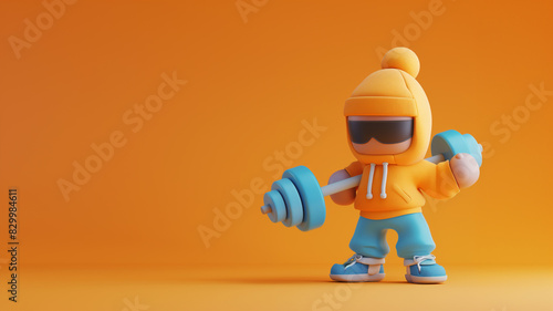Obraz premium Energetic 3D fitness trainer with a whistle and dumbbells