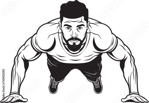 Fototapeta premium Energetic Excellence Sportive Males Push Up Achievement Black Vector Logo...