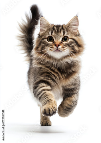 Obraz premium Energetic Fluffy Cat Playfully Bounding Through a Room, Filled with Curiosity