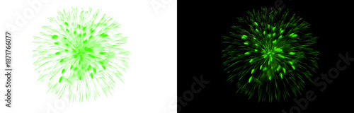 Fototapeta premium energetic green fireworks bursting on transparent background and black for...