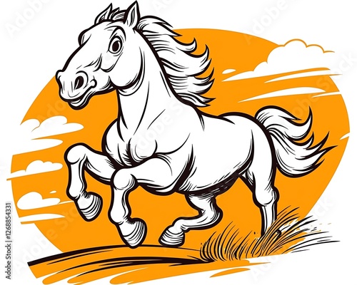 © Biggy, Obraz premium Energetic Horse Running in a Vibrant Landscape Illustration