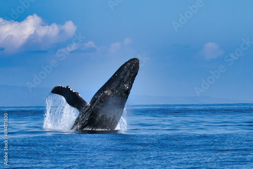 Fototapeta premium Energetic humpback whale breaching near Lahaina on Maui.