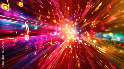 Fototapeta premium Energetic Melodies: Blurred Lights and Vibrant Colors in a Music-Themed Backdrop