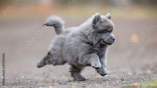 © Thavesak, Fototapeta premium Energetic Norwegian Elkhound Puppy Chasing Tail in Spirited Playfulness