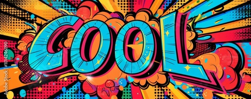 © peppastocker, Obraz premium Energetic pop art background featuring "COOL." Comic book elements, Bold patterns, Bright vector