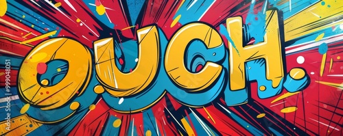 © Innovator587, Obraz premium Energetic pop art background featuring "OUCH." Comic book style, Dynamic visuals, Bright vector