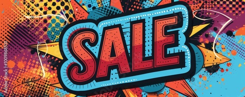 Obraz premium Energetic pop art background featuring "SALE." Comic book elements, Bold...
