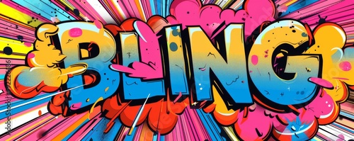 © Іван Ніколов, Fototapeta premium Energetic pop art background with "BLING" inside. Comic book style, Explosion theme, Bright vector