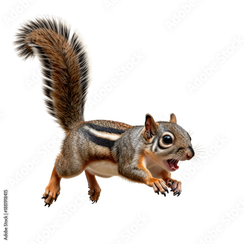 © Sunny_nsk, Obraz premium Energetic Squirrel in Motion on White Background