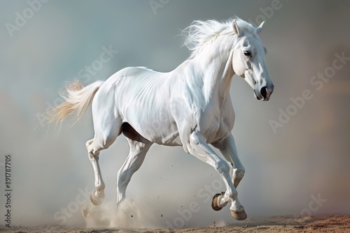 Obraz premium Energetic White Horse in Motion
