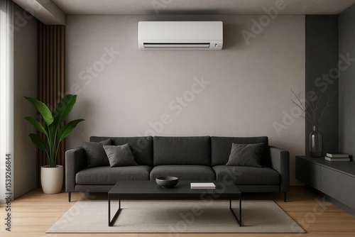Fototapeta premium Energy-efficient air conditioning unit in contemporary living room with...