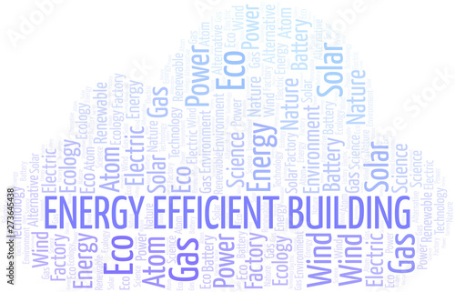 © sharafmaksumov, Obraz premium Energy Efficient Building word cloud. Wordcloud made with text only.