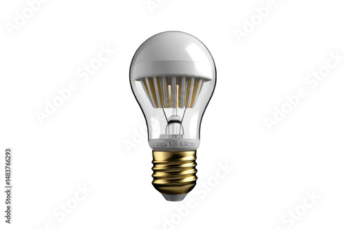© Png Art, Obraz premium Energy-efficient led light bulb with clear glass housing and gold base on black background
