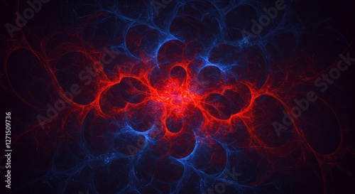 Obraz premium Energy Flow: An abstract digital art piece features a dynamic interplay of vibrant red and blue energy, creating a visually striking and evocative display.