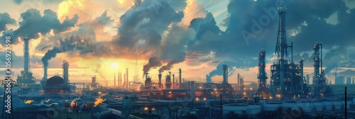 © Vlad, Fototapeta premium Energy Gas Industry Overview: Oil and Natural Gas Refinery at Dusk in Asia