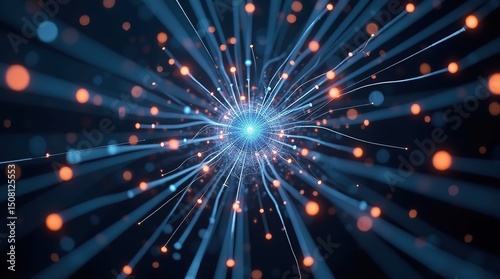© Viktor_D, Fototapeta premium Energy pulses travel between nodes in a structured particle matrix, forming a dynamic digital web.