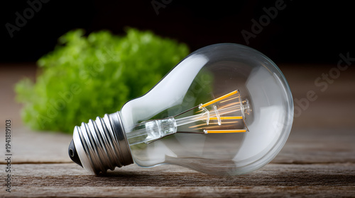 Fototapeta premium Energy saving LED light bulb placed near green moss symbolizing sustainable electricity and eco friendly technology concept.