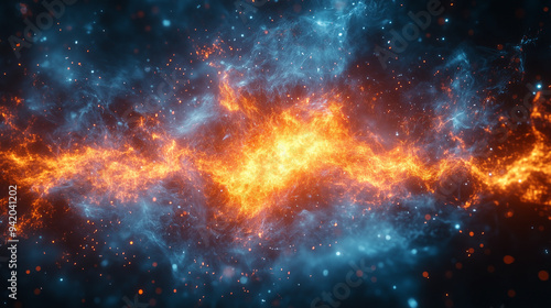 Fototapeta premium Energy splitting in a nuclear fission process, atomic particles breaking apart, releasing energy in waves