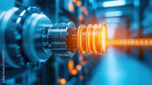 Obraz premium Energy Storage High-tech machinery with glowing components in a modern industrial setting.