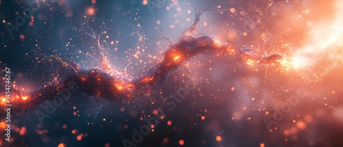 Obraz premium Energy stream unfolds through space, radiating ethereal light and particles.