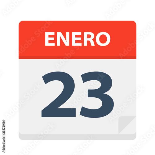 Fototapeta premium Enero 23 - Calendar Icon - January 23. Vector illustration of Spanish...