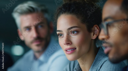 © Isolated studio, Obraz premium Engaged Team Discussion in Modern Office Environment