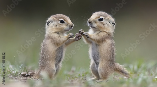 © THUA, Fototapeta premium Engaging black tailed prairie dog babies playing together joyfully