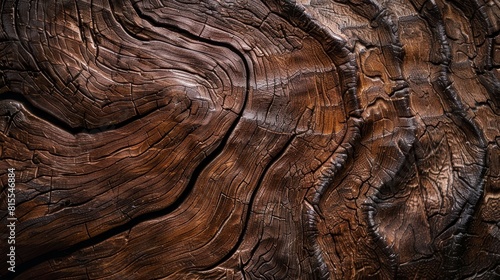 Naklejka premium Engaging close-up view of a brown wooden texture, where earthy tones and...