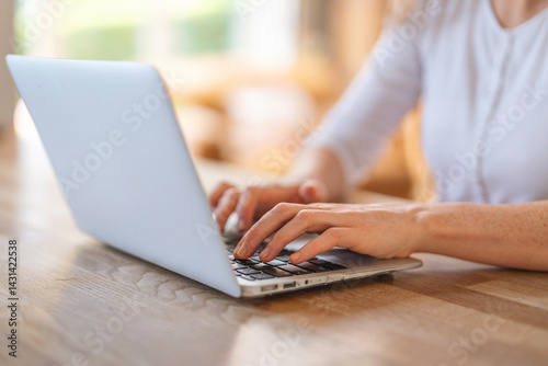 Fototapeta premium Engaging in productive work at a cozy cafe during the afternoon with a laptop...