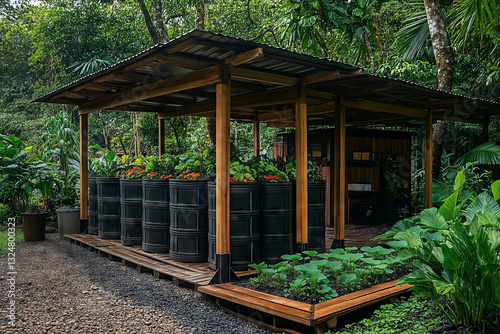 Naklejka premium Engaging in zero-waste initiatives at an eco-friendly Costa Rican farm